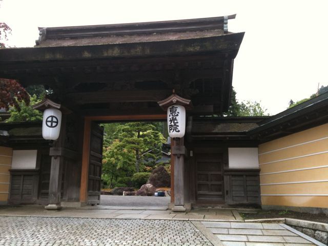 It takes around 2 hours to get to Mount Koya from Osaka. And to do so one needs to take a train, then a cablecar and a bus that winds up a little road and drops you off  in front of the local town center.
