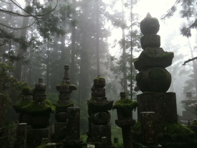 The highlight in Koyasan is definitely the Okunoin cemetery. We went early morning as the mist was still hanging over the mountains. Pure magic.  I took some amazing pics as I brought my external flash with me and Bram played Peeping Sun Through The Trees – this is now his new native American name. He also played Flashing Yukata in our temple room, no pictures of that, promise 😉