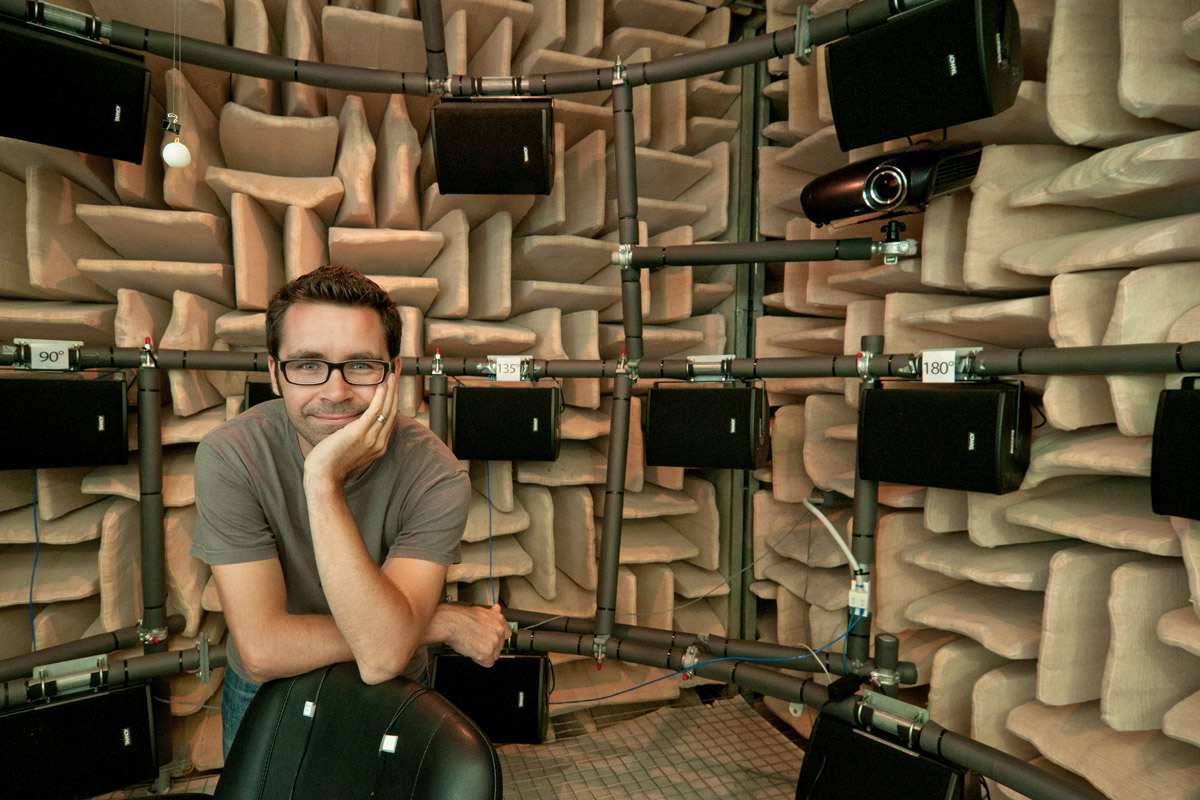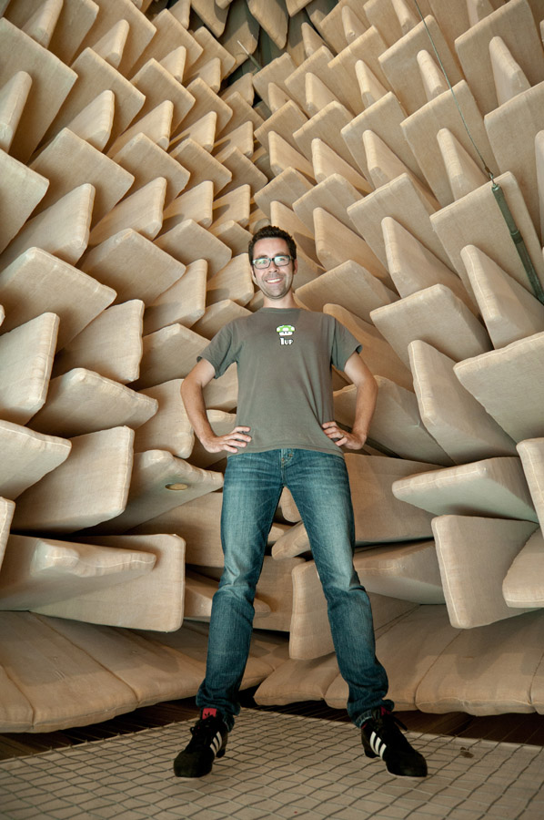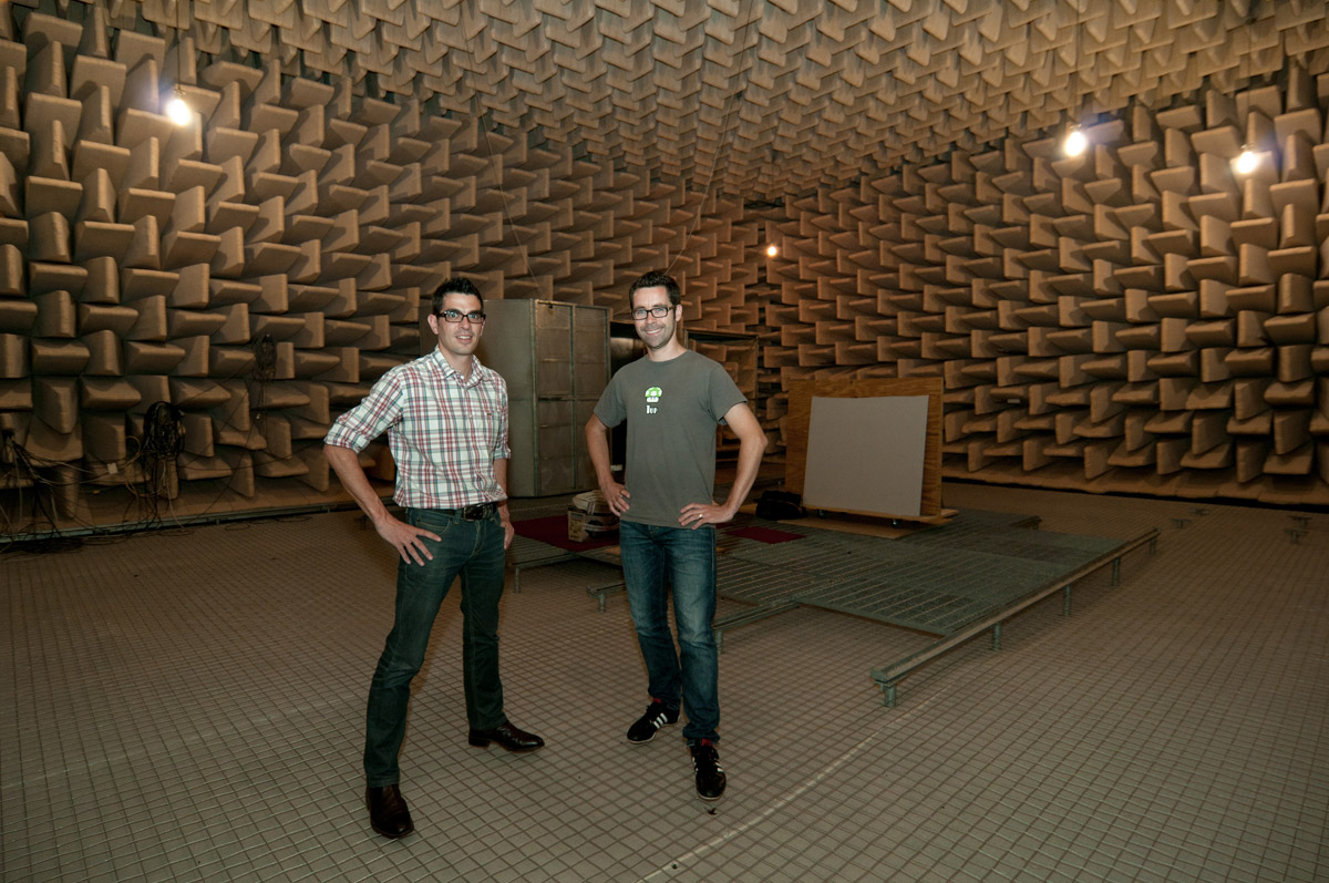 … maar herbergt nog altijd één van de meest indrukwekkende en technische verfijnde testkamers, zoals de grote anechoïsche kamer (samen op de foto met Fabrice) …