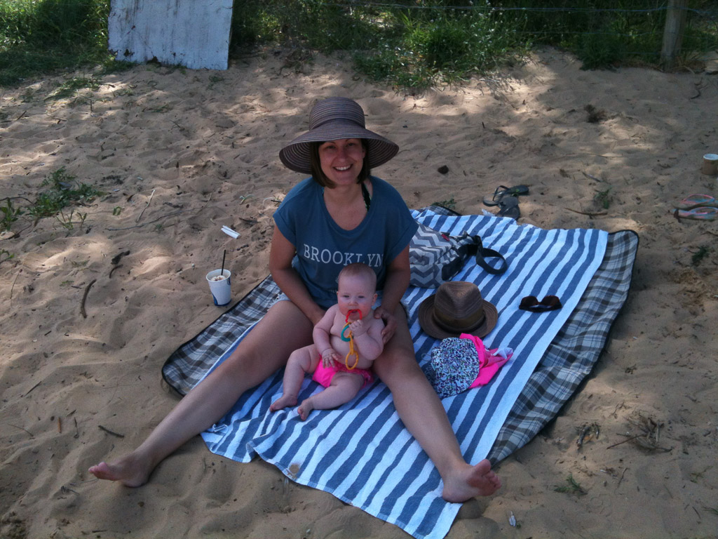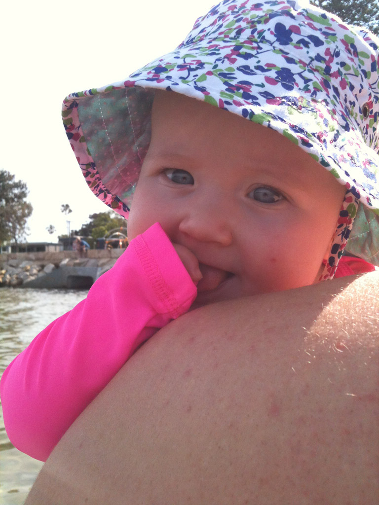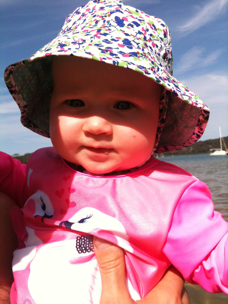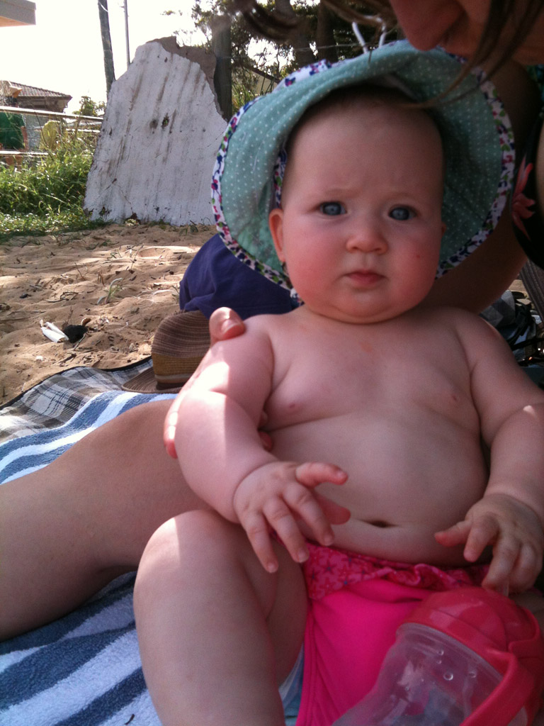 Volgende week zondag beginnen we met zwemlessen. Dus gaan we in namiddag naar het strandje om af te koelen. Een keertje testen of die zwempampertjes en dat badpakje goed werken!
