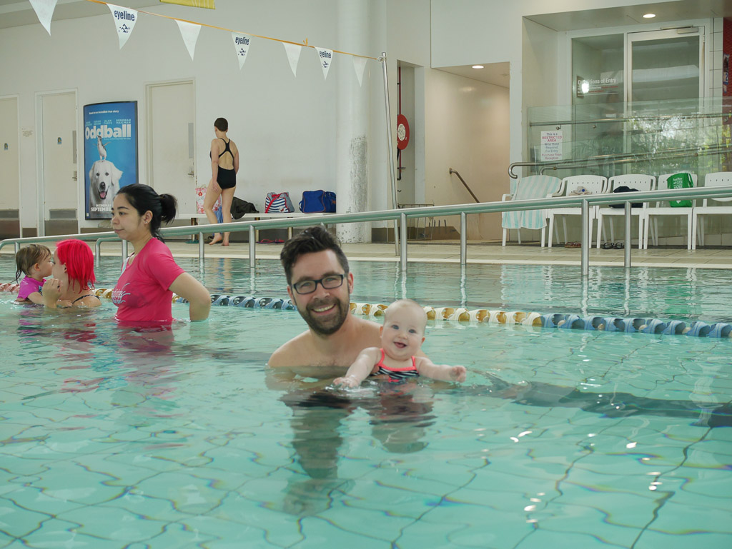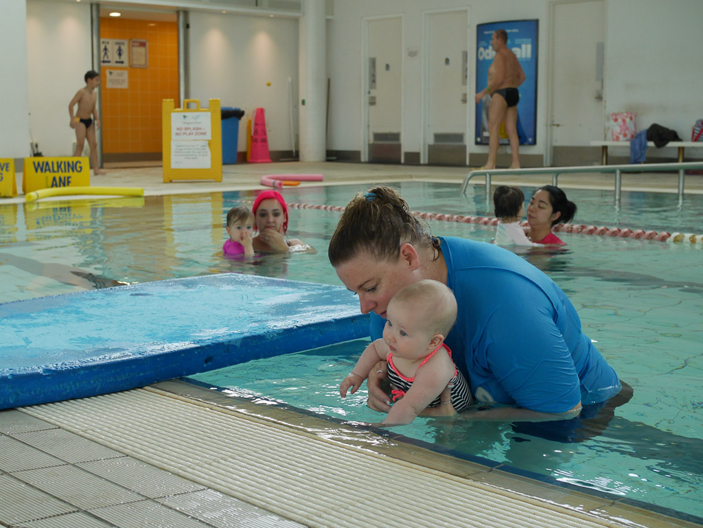 Lag ik daar net gezellig in mijn bedje te snurken (zo’n 20 minuutjes), komt mama mij plots wakker maken! Ik wist niet goed wat daarvan te maken. In de auto hadden mama en papa het maar over zwemmen en een bad, maar ik moest toch helemaal niet in bad? We kwamen ergens aan en dan moest ik weer kleertjes uit en een raar pakje aan en ik zag daar overal kindjes spelen. Bleek dat dit een ‘zwembad’ was, een speciaal badje, lekker warm, waarin ik met papa wat oefeninkjes mocht doen en liedjes zingen. Ik kreeg wat water over mij heen (niet zo fijn), en mocht spelen met de lerares (wel fijn) en het drijven vond ik ook wel leuk. Maar oooooooh zooooo vermoeiend! Thuis tijden het pap eten lekker in slaap gevallen zzzzz xxx