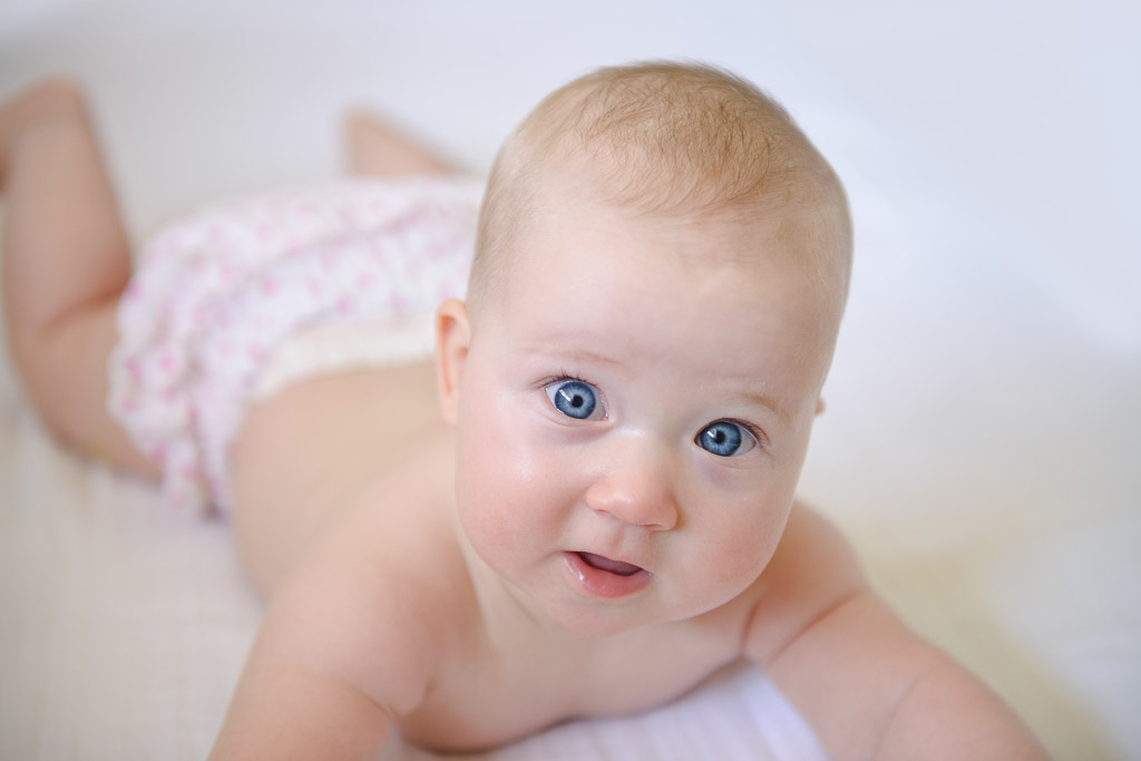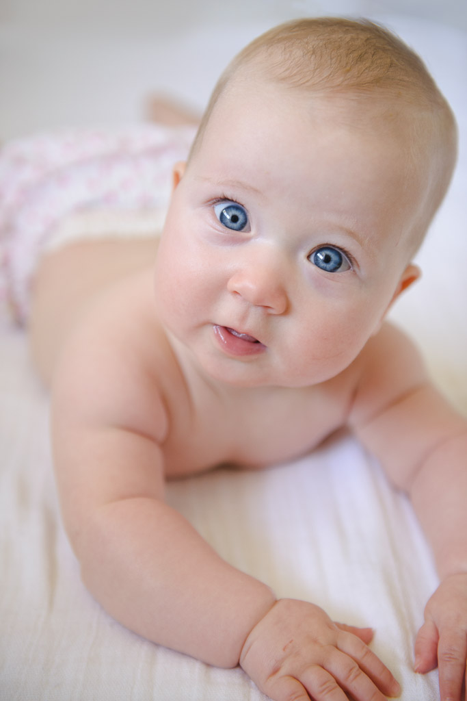 Vorige maand probeerde ze nog haar voetjes vast te pakken. Nu brengt ze die al naar haar mond. Eergisteren heeft ze voor de eerste keer haar eigen grote teen geproefd! Ze kan ook al goed rechtzitten (steeds langer alleen, gisteren al een 20-tal sec) en leert zo goed balanceren. Ze kan wel rollen, maar doet het niet graag vanzelf. Tenzij er iets heeeeeeel interessants te zien is, dan ligt ze meteen op haar zij.