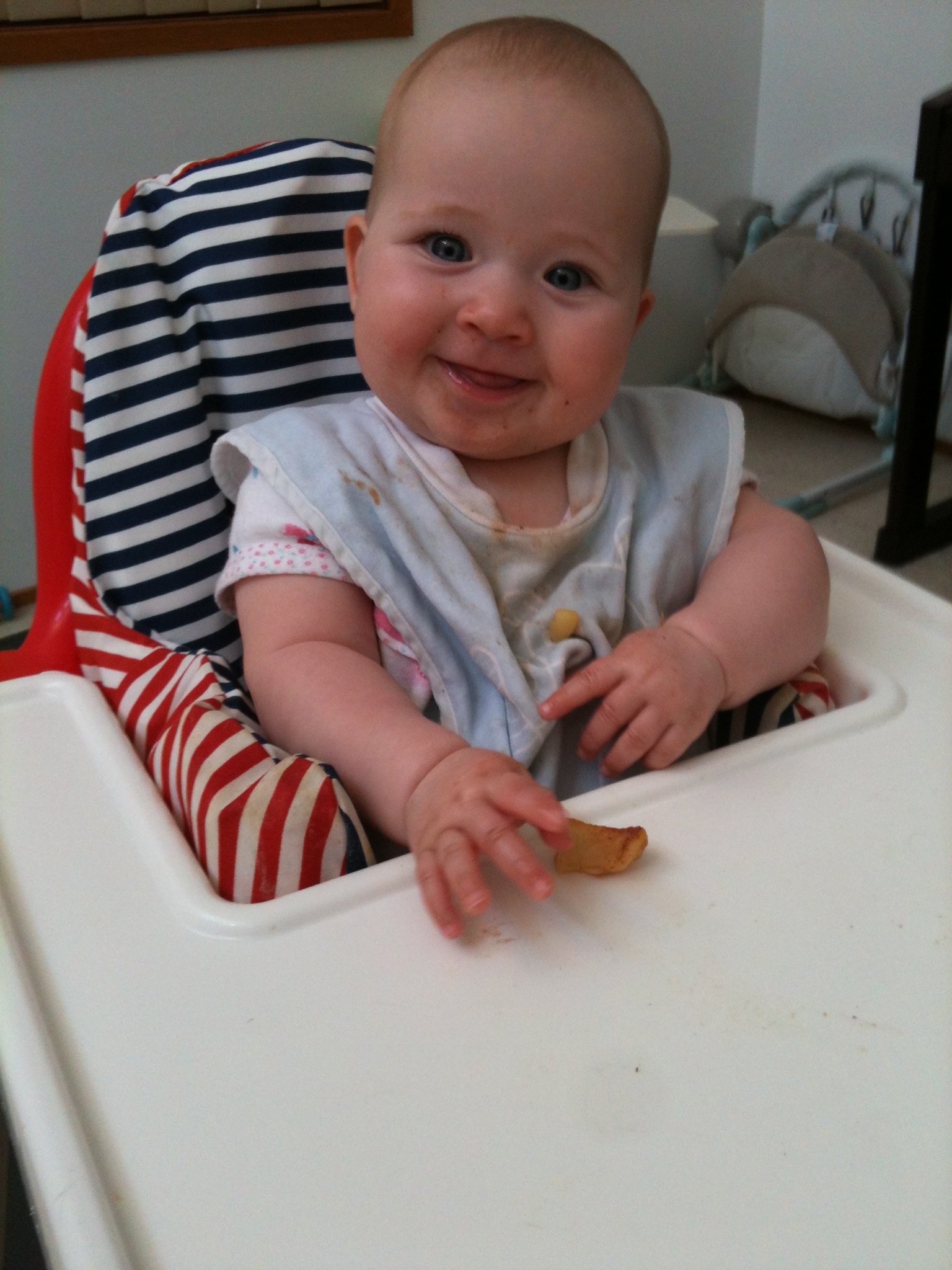Appeltjes zijn op zich nog wat hard om te eten. Dus heeft mama ze gestoofd met een stuifje kaneel zodat ze lekker mals waren. Dat vond ik wel heeeeel lekker om op te sabbelen!