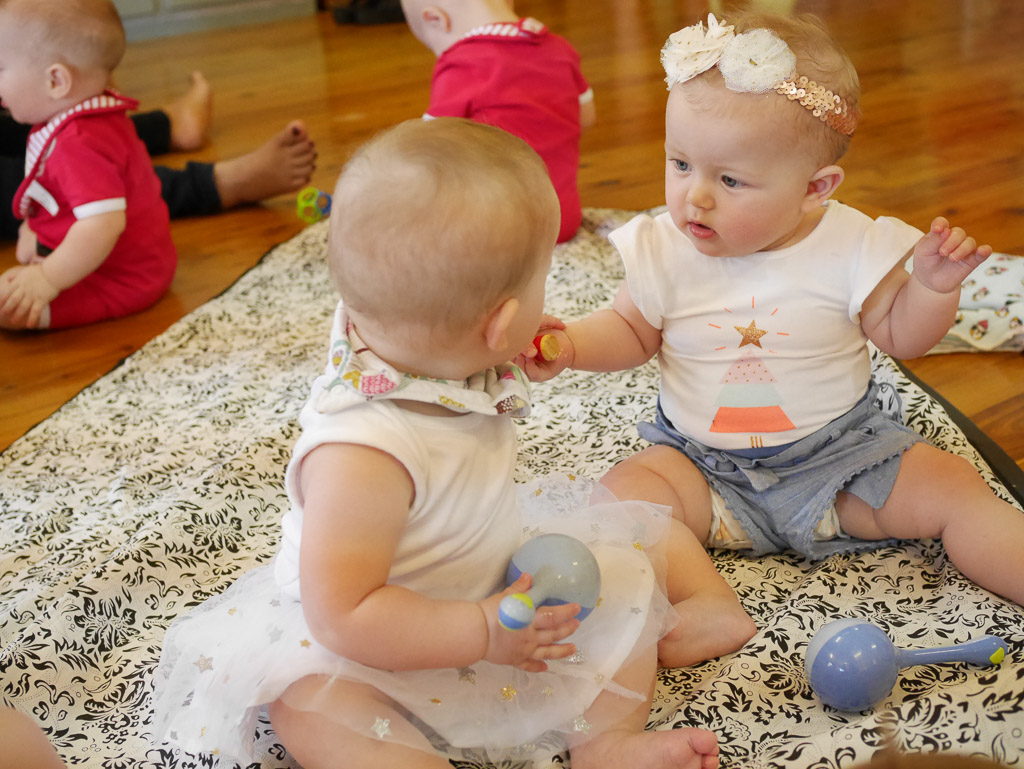 Ook hier iets van een 13-tal babies. Charlotte is een van de weinige die nog geen tandjes heeft! Ongeveer de helft kan al kruipen ook. Maar Charlotte kan dan wel weer goed balanceren en recht zitten. En ook met de fijnere motoriek en babbelen staat ze voor in vergelijking met de rest.