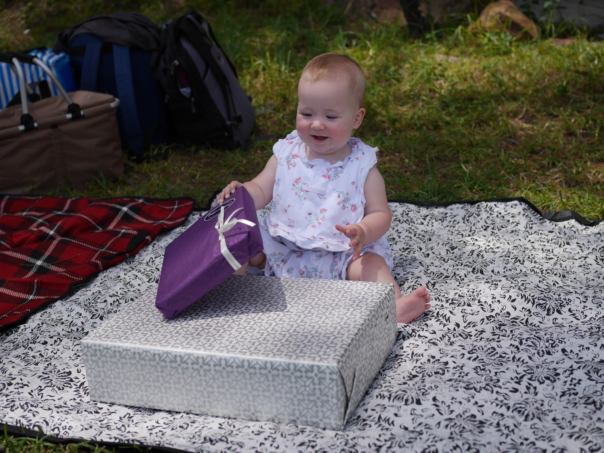We hebben vooral een leuke picnic gehad aan het water. Beetje met onze voeten in het water gesplasht. Lekker oesters en BBQ gegeten. En voor ons klein mevrouwtje was het alweer uitpak-tijd. Kadootjes opendoen, dat is bijna zo leuk als gras eten!