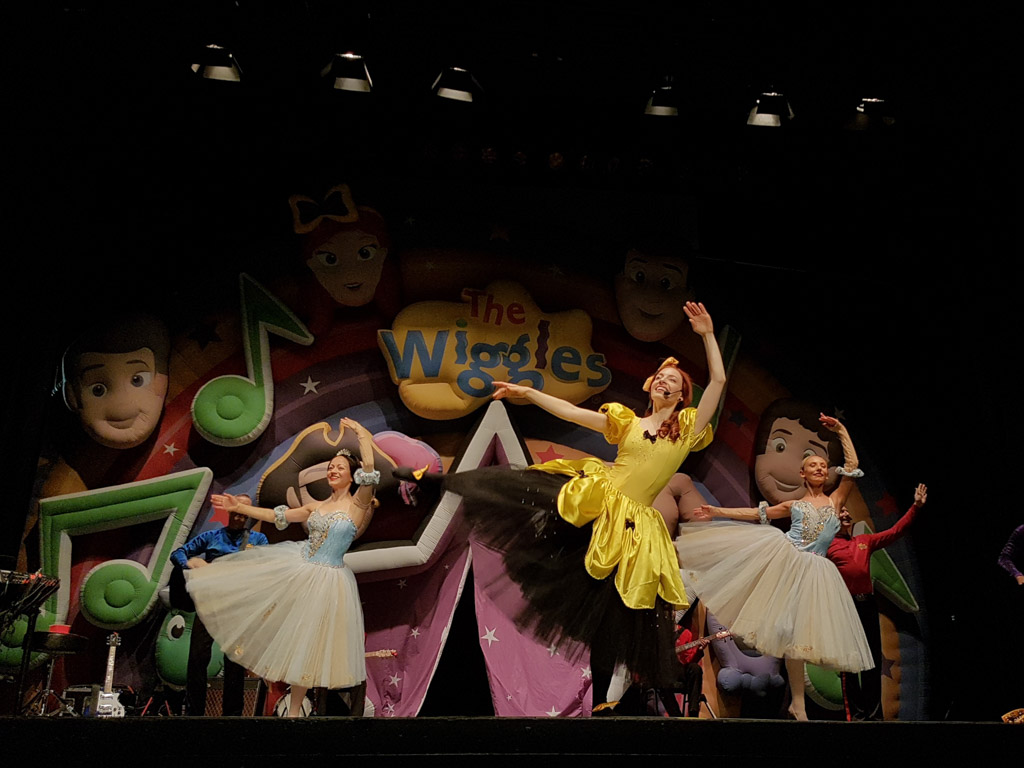 Wel, laten we beginnen bij het begin. Af en toe mag Charlotte een beetje naar de lokale kinder TV ABC kids kijken (dat is een beetje zoals studio 100 / ketnet). Nooit erg lang – en in het begin was haar interesse na 15 minuutjes toch weg. Maar na een tijdje merkten we dat ze vroeg achter “ljoljo” en dan wiggelde ze steeds met haar handjes. Het duurde eventjes eer wij doorhadden (sorry Charlotte!) dat ze dan de Wiggles wou zien. Dit is een muzikaal groepje met 3 gasten en 1 meisje, en vooral die laatste ziet Charlotte erg graag. Emma, de gele Wiggle, is een toffe zangeres/ballerina, en C doet graag alles achterna wat Emma doet!