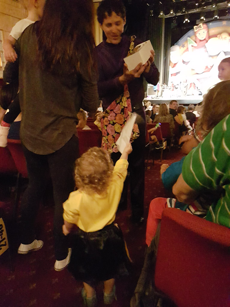 Tijdens de show kwamen Lachy (de paarse Wiggle) en Simon (de rode Wiggle) langs om kadootjes en tekeningen op te halen. Charlotte aarzelde geen seconde om haar tekening aan Lachy te geven! Haar mond viel open toen hij neerknielde om haar te bedanken, toen was ze dan toch eventjes stil.
