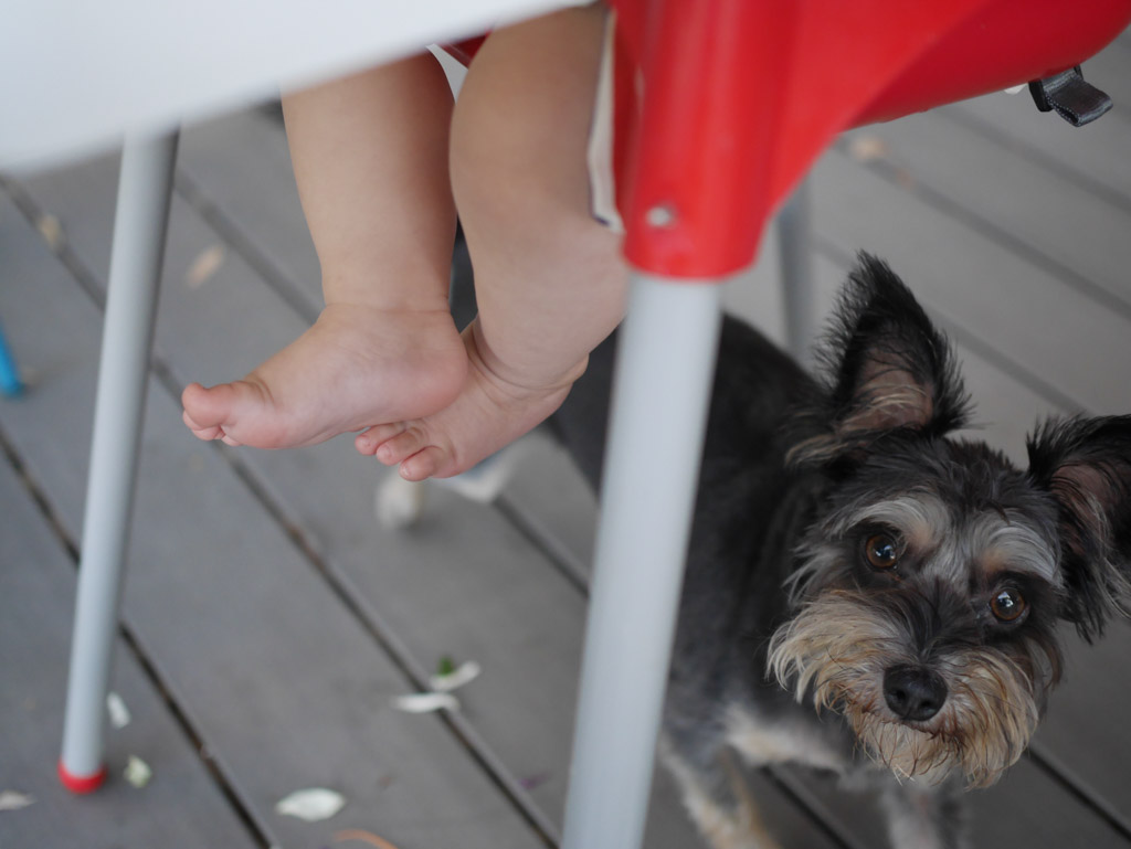 En zoals gewoonlijk, de trouwe waakster, klaar om alle restjes op te eten…
