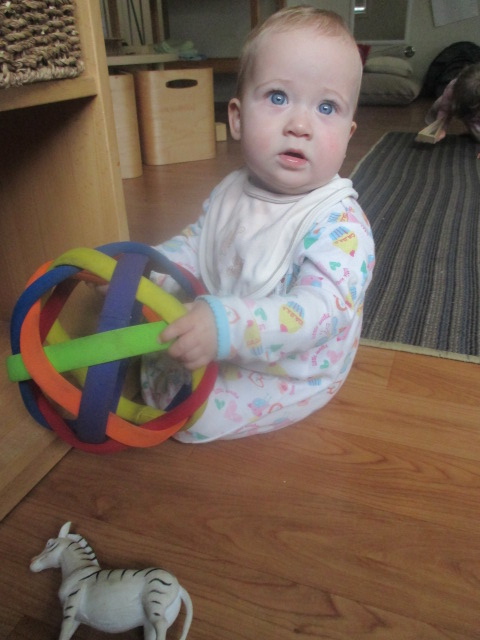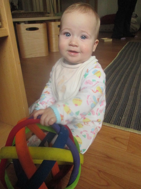 Zoals je ziet kruipt ze sinds gisteren beter op haar knietjes. En sneller ook!
