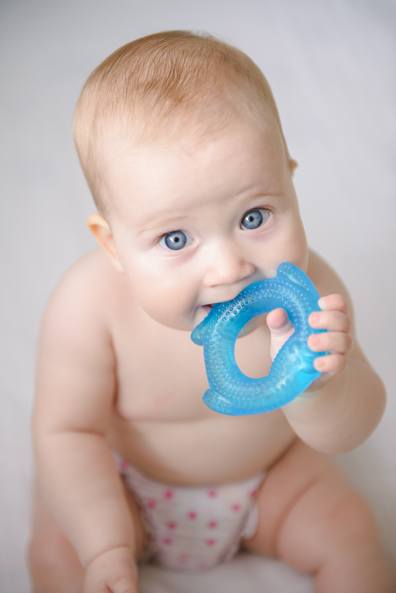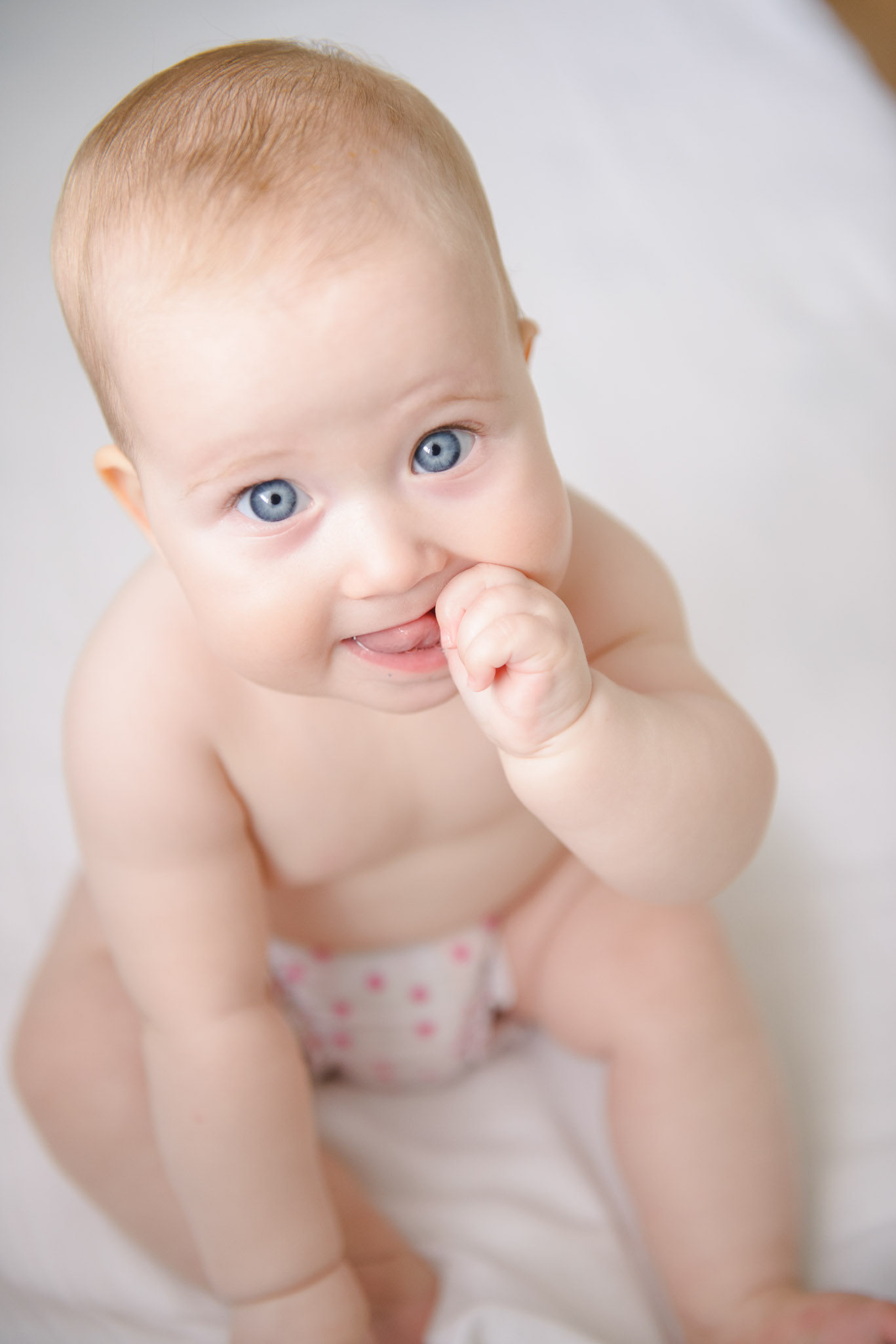 Nog geen tandjes te zien, al denkt mama (alweer) dat ze niet veraf zijn. Heel veel zeveren, aan de oren trekken, dikke kaakjes etc. Ach ja, die tandjes komen naar omhoog…en gaan dan weer naar beneden!