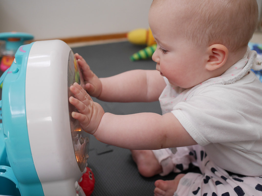 Pas nu begint ze er echt mee te spelen! Een van haar nieuwe favorietjes, dankjewel Tante Wenneke!!!
