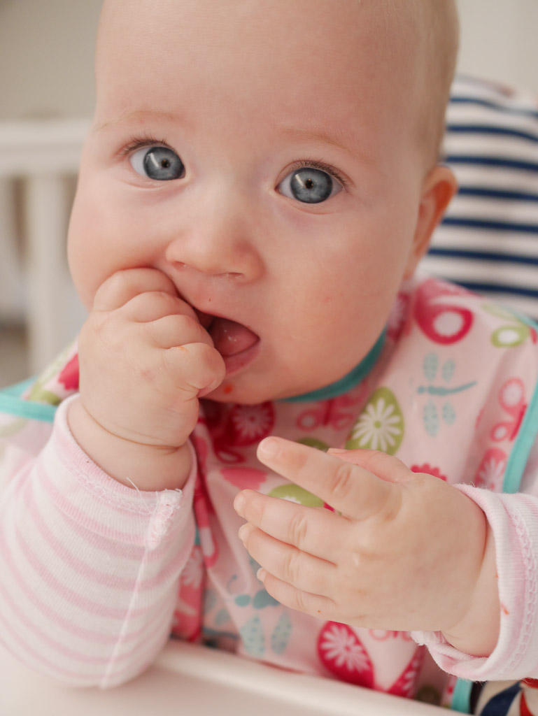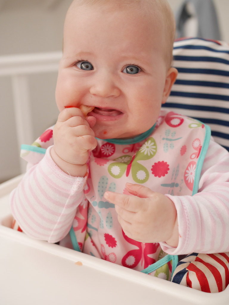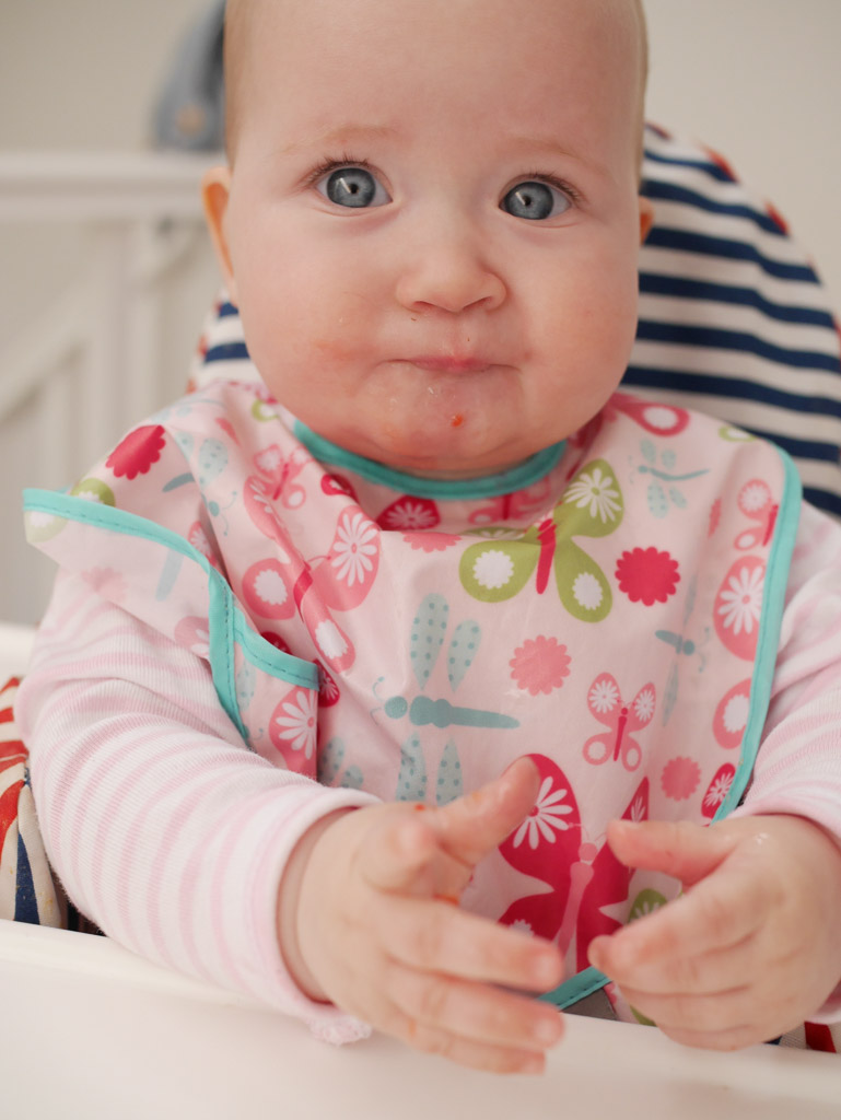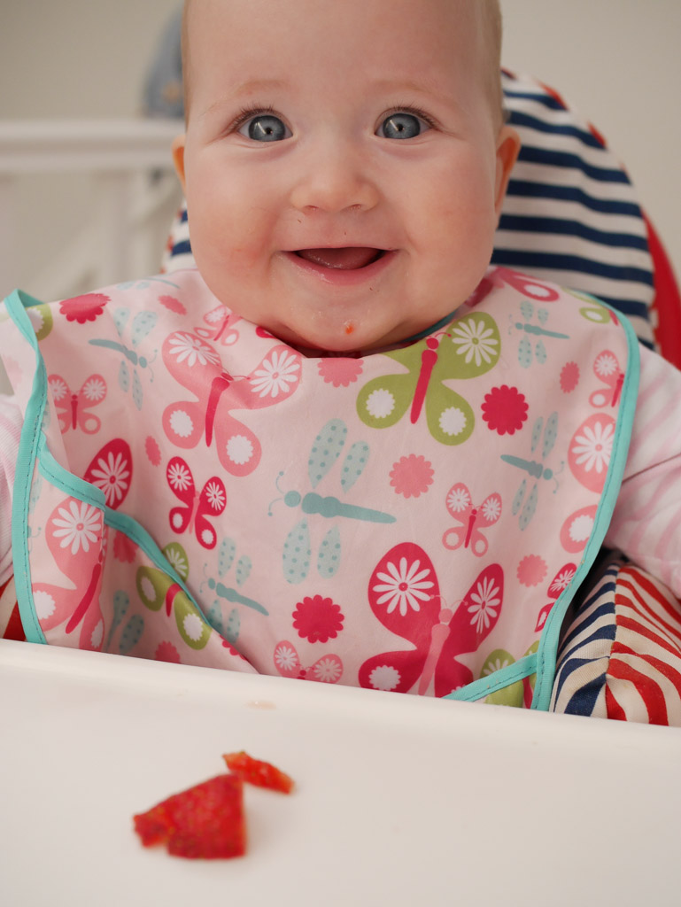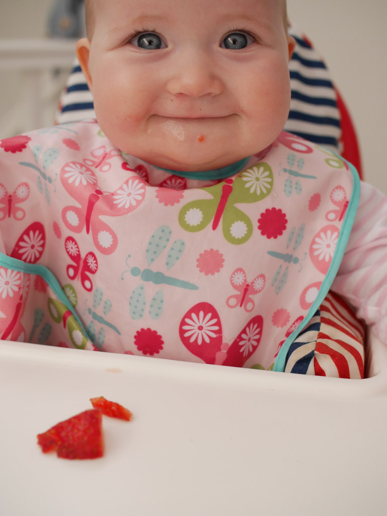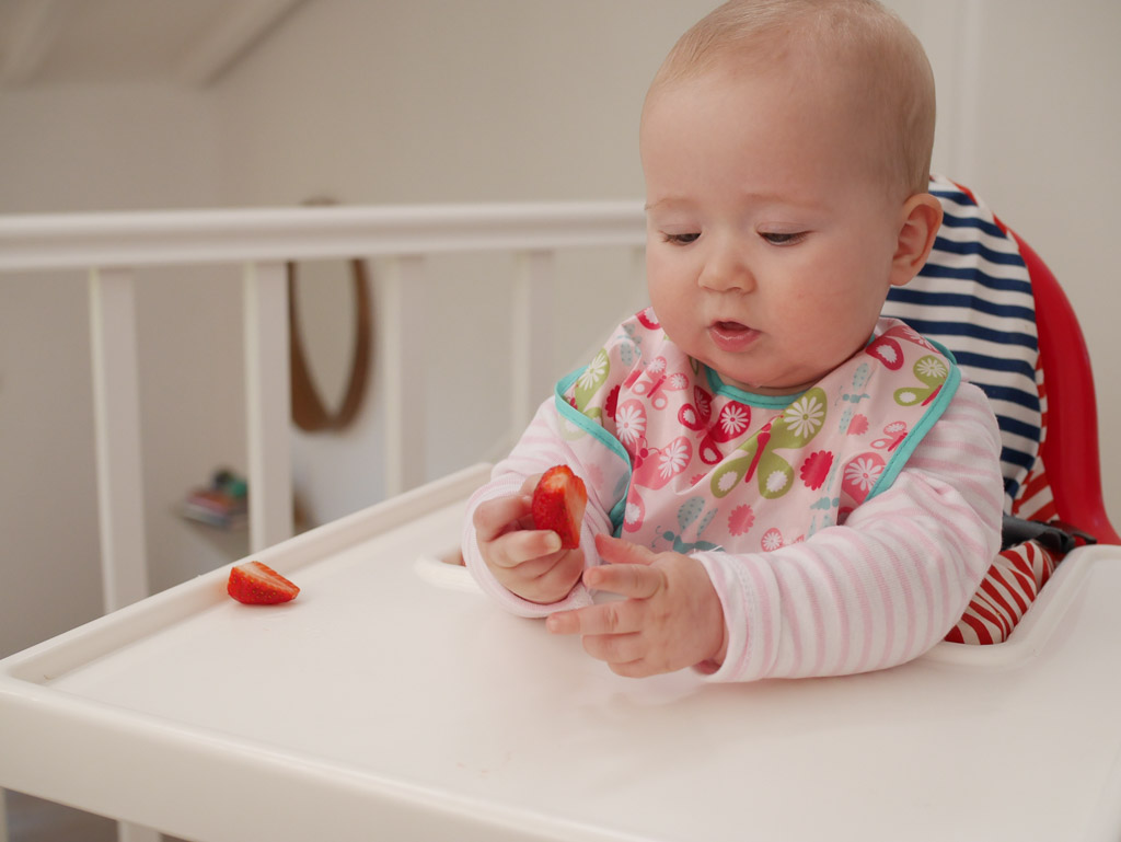 PS de aanbeveling van Kind & Gezin is tegenwoordig dat babies alles mogen eten BEHALVE noten en honing. Tenzij er in de familie gekende allergieën zijn, dan een beetje oppassen ermee. De laatste nieuwe theorie is dat kinderen minder allergische reacties krijgen en later veel meer verschillende dingen eten als ze daar al vroeger mee in contact komen. Desalniettemin blijven we voorzichtig, daarmee dat ik nieuwe dingen altijd ‘s morgens of ‘s middags probeer, dan kunnen we de rest van de dag nog zien of er een allergische reactie komt.