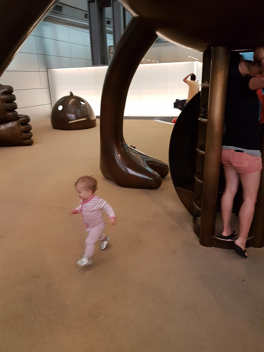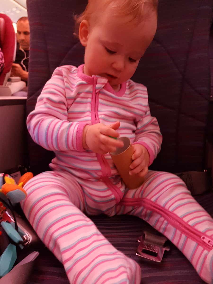 Gelukkig was de eerste vlucht ‘snachts en dus heeft C het grootste deel van de 14u gewoon geslapen. In Doha lekker ontbeten en goed wat rond-gecrosst. Op de tweede vlucht wou het slapen niet zo goed lukken. In plaats daarvan heeft ze zich goed bezig gehouden met entertainment (ipad, boekjes, prulletjes en de andere reizigers natuurlijk). Geen al te gekke tantrums dus omdat ze niet rond mocht lopen, phewie!
