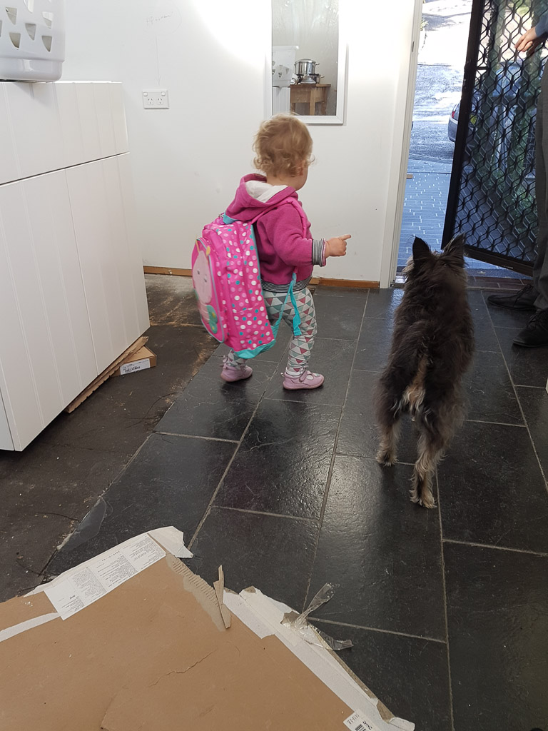 Wanneer ik haar vroeger ging ophalen in creche moest ik haar oppakken en mocht ik haar niet meer loslaten. Nu krijg ik een snelle knuffel en dan RENT ze naar haar vakje, waar haar rugzak zit. Dan wil ze eerst controleren of al haar spulletjes er nog wel inzitten hahaha. Stel je voor dat er een ander kindje met haar hoedje gaat lopen 😉