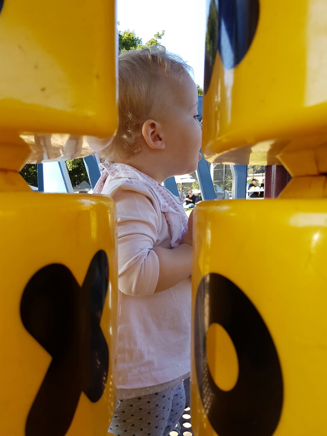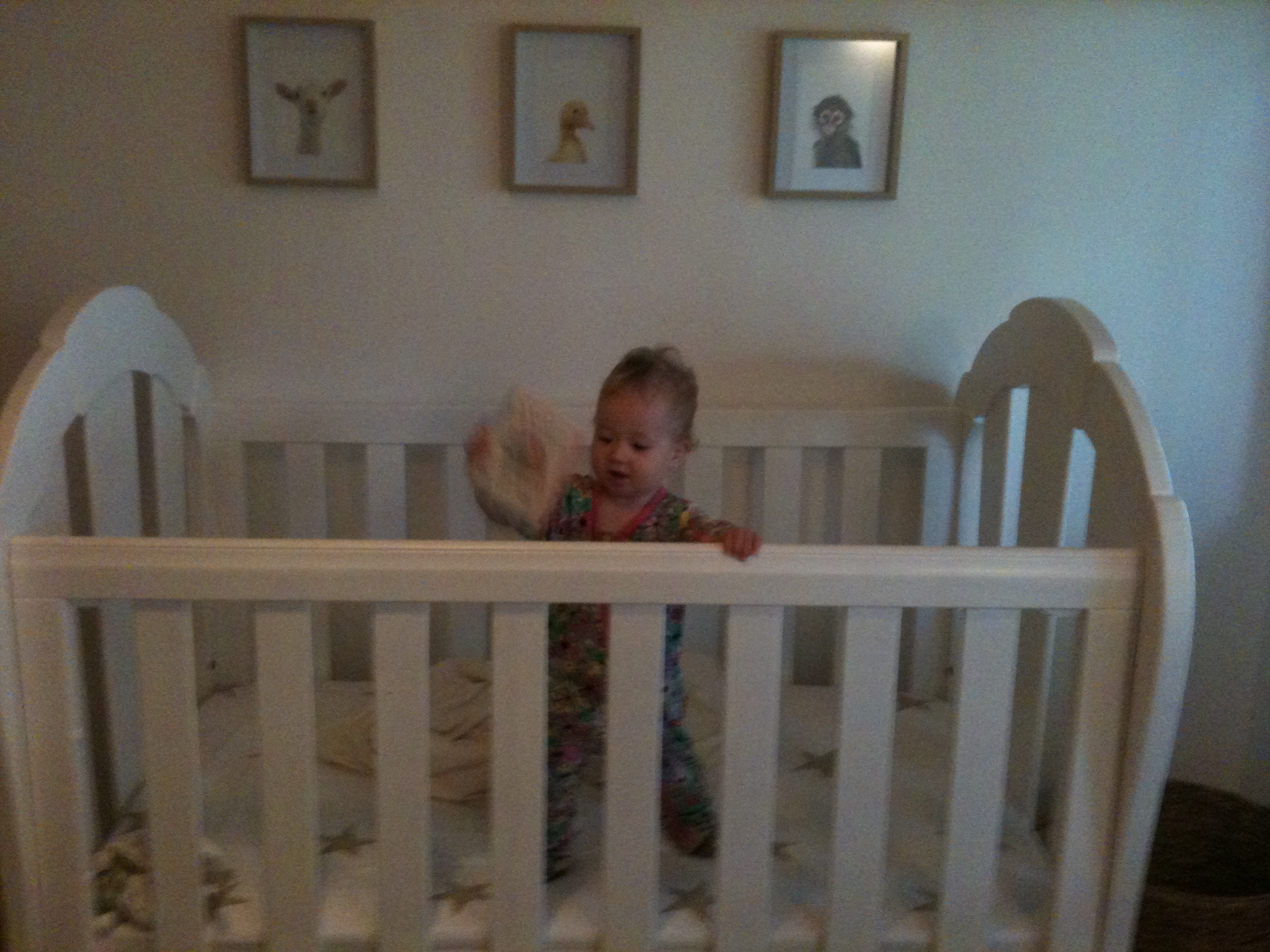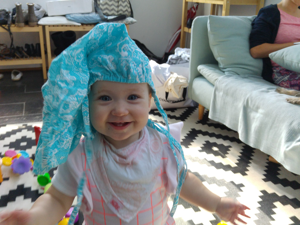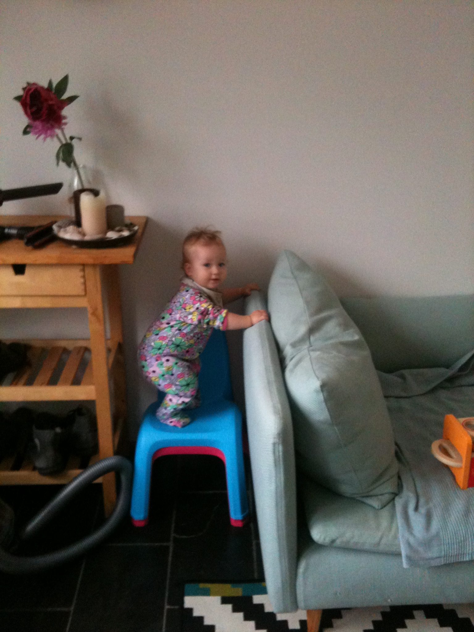 Ze is niet echt een klein babietje meer, maar toch ook nog niet helemaal een peuter. Al heeft ze wel een 3-tal keer maar één dag-slaapje gedaan. Het zal niet meer lang duren eer ze overschakelt.