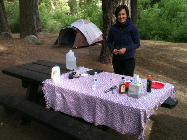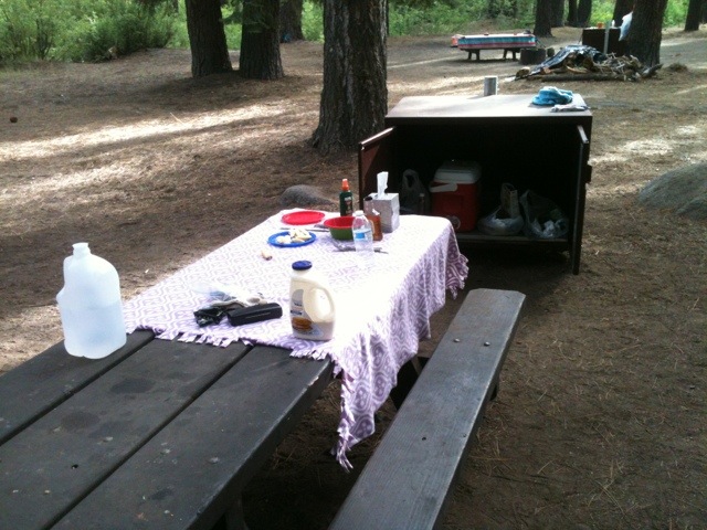 Bear box in the background to store all your food. It is is illegal to keep food in the car, because the black bears will break in and ruin your vehicle (and it is bad for their health too)!