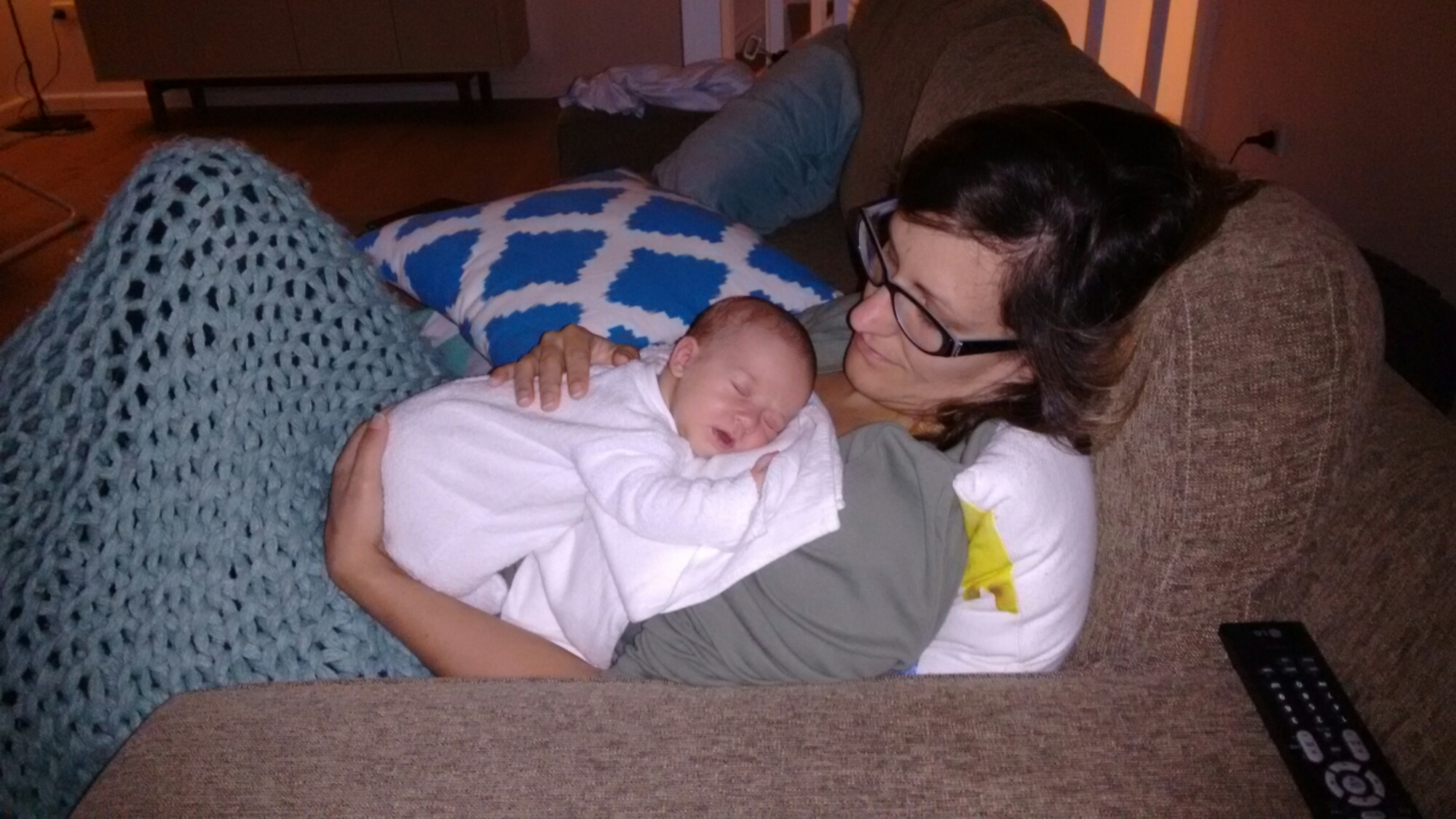 Na haar eerste traantje gisteren, zijn we nu wel zeker dat ze haar eerste groeisprongetje heeft. Ze is meer alert en volgt alles met haar ogen.