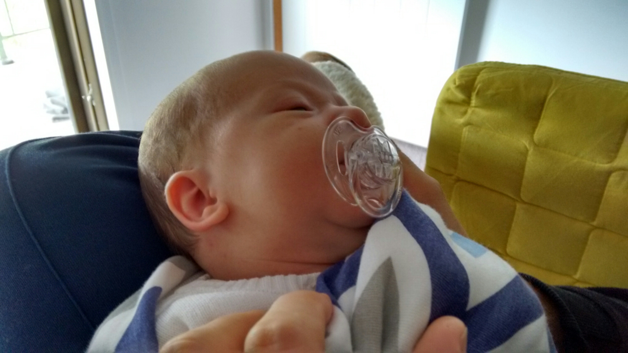 Maar vandaag bleef ik maar huilen. Waarschijnlijk wat groeipijnen? De borst helpte wel, maar eten deed ik niet echt. Dus nu kwam die tut wel van pas. Kon ik lekker op zuigen en daar kalmeerde ik wat van!