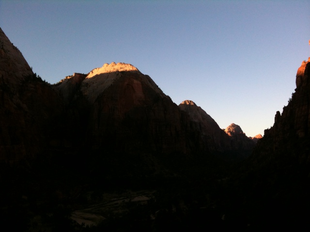 Because it gets ridiculously hot during the day (40 degrees), we got up before first light, to arrive at the start of the trail when the sun touched the tops of the highest mesas and mountains.