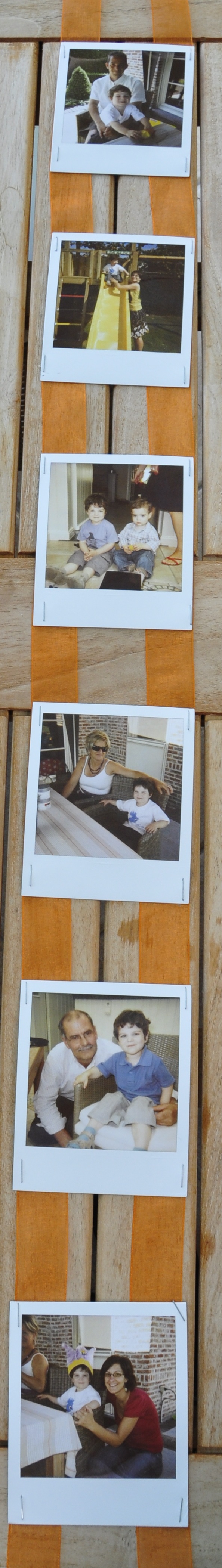 Time obviously didn’t stand still while I was gone. Crazy how big my nephews have grown! And endearing to see how much sweet joy they bring their parents and certainly their grandparents, who are completely smitten! And have to admit I’m not immune myself, on the contrary. Totally in love!!! I was so lucky to be able to celebrate my godson’s birthday. I miss too many moments, so the ones I can share, I grab with my two hands. Besides the traditional toys as presents, I also made him a chain of polaroids to hang in his bedroom (see left) with a photo of him and the people he loves 🙂