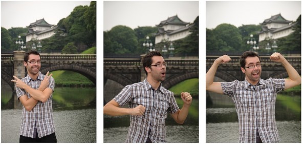 Anyway, we still had to pack our bags and get to Tokyo station. Because we had a couple of hours to spare, we decided to go see (read: crawl to) the imperial palace. I asked Bram if I could take a picture of him – figured I’d need some for the folks back home since I’d mostly been taking pictures of temples and stuff. Plus the palace isn’t that royal or imperial, not much of a subject.